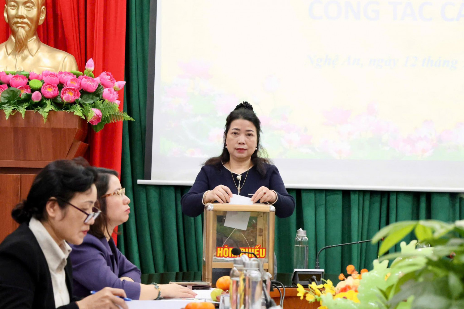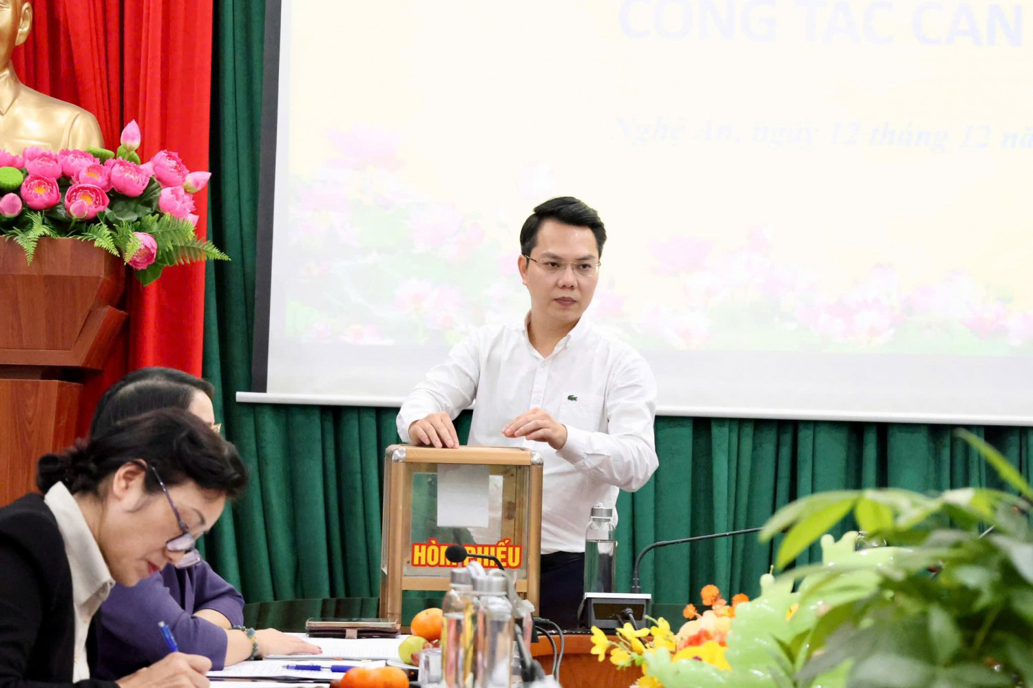 Tại cuộc họp, Đoàn công tác đã tiến hành lấy phiếu xin ý kiến về chủ trương điều động và bổ nhiệm BSCKII. Nguyễn Cảnh Hùng – Phó Giám đốc Bệnh viện giữ chức vụ Phân viện trưởng Phân viện Pháp y Tâm thần Bắc Miền Trung. Việc lấy phiếu được thực hiện nghiêm túc, dân chủ và đảm bảo đúng các quy định hiện hành.