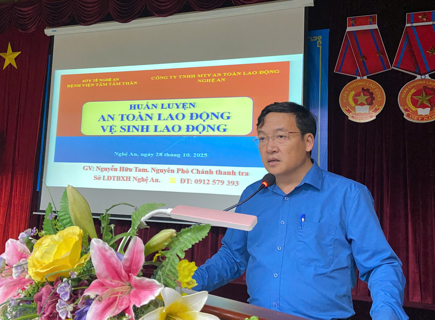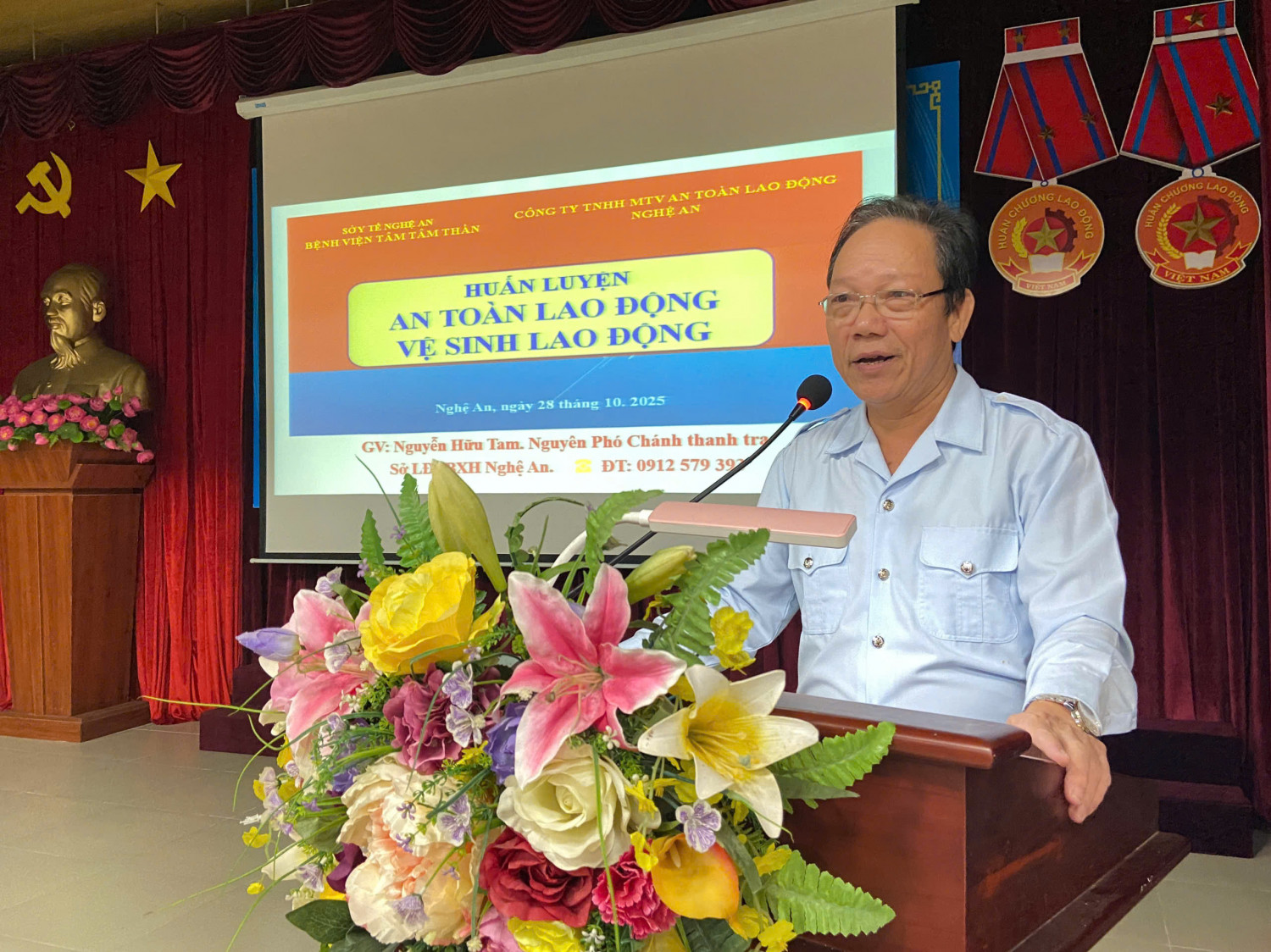 Chương trình được phối hợp thực hiện cùng Công ty TNHH MTV An toàn lao động Nghệ An. Buổi huấn luyện được giảng dạy bởi Ông Nguyễn Hữu Tam – Nguyên Phó Chánh Thanh tra Sở Lao động – Thương binh và Xã hội Nghệ An, người có nhiều kinh nghiệm thực tiễn trong công tác ATVSLĐ, mang đến nhiều kiến thức thiết thực bám sát đặc thù ngành y tế như: